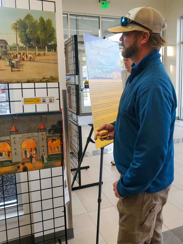 The exhibit showcases the works of artists skilled in telling local history stories through the medium of art. Learn about the artists behind the art and discover the ties to local history by downloading the 2023 Bicentennial Art Exhibit Guide, or by viewing our Bicentennial Paintings page. A November 2nd opening reception was held to give supporters a preview of the exhibit.